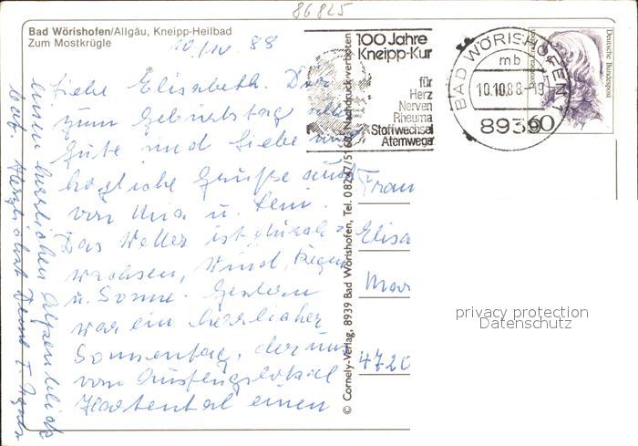 71974211 alte Postkarte Bad Woerishofen Zum Mostkruegle postalisch gelaufen KatCode: 11110009778116