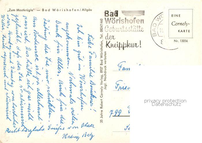73866629 alte Postkarte Bad Woerishofen Zum Mostkruegle Gaststaette postalisch gelaufen Erhaltung siehe scans [FriedD77] KatCode: 11110009778116