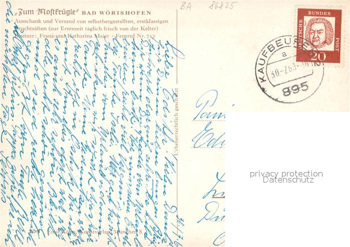 73648577 alte Postkarte Bad Woerishofen Zum Mostkruegle Terrasse postalisch gelaufen Erhaltung siehe scans [WerneD78] KatCode: 11110009778116