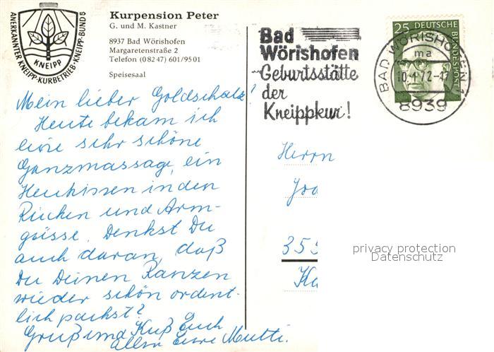 73592264 alte Postkarte Bad W?rishofen Kurpension Peter Speisesaal postalisch gelaufen Erhaltung siehe scans [LiesaD40] KatCode:
