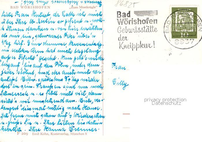 73570211 alte Postkarte Bad W?rishofen Zum Mostkr?gle postalisch gelaufen Erhaltung siehe scans [PaolaD17] KatCode: