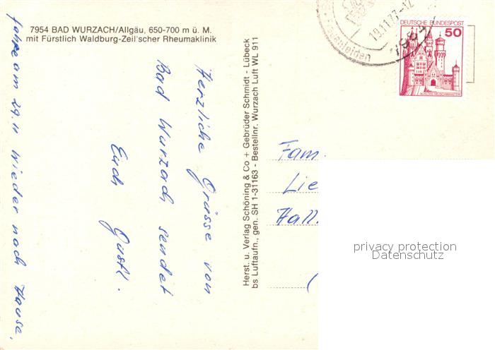 73551297 alte Postkarte Bad Wurzach Fliegeraufnahme mit Fuerstlich Waldburg Zeilscher Rheumaklinik postalisch gelaufen Erhaltung siehe scans [WerneD78] KatCode: 11110008436010