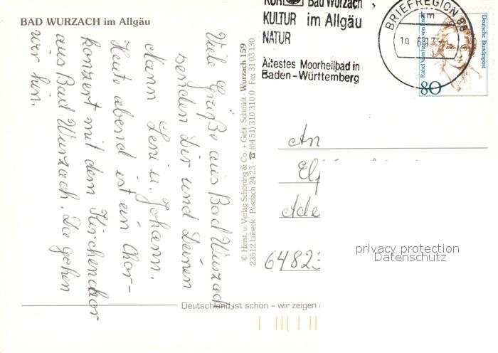 73179094 alte Postkarte Bad Wurzach Kurzentrum Partie an der Ach Schloss Marienbrunnen Fliegeraufnahme postalisch gelaufen Erhaltung siehe scans [FriedD77] KatCode: 11110008436010
