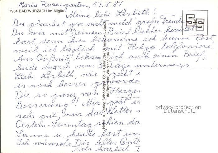 72253653 Bad Wurzach Maria Rosengarten Kirche Schloss Gymnasium Marktstrasse postalisch nicht gelaufen Erhaltung siehe scans KatCode: 11110008436010
