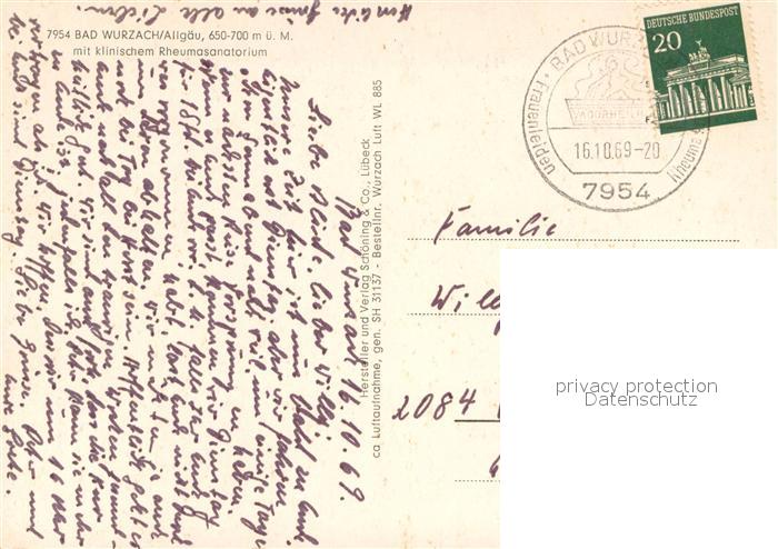 73685369 alte Postkarte Bad Wurzach mit klinischem Rheumasanatorium postalisch gelaufen Erhaltung siehe scans [WerneD78] KatCode: 11110008436010