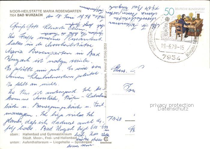 72123623 alte Postkarte Bad Wurzach Moor Heilstaette Maria Rosengarten postalisch gelaufen Erhaltung siehe scans KatCode: 11110008436010