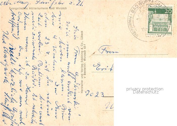 72966912 alte Postkarte Bad Wurzach Muetterkurheim postalisch gelaufen Erhaltung siehe scans [LiesaD40] KatCode: 11110008436010