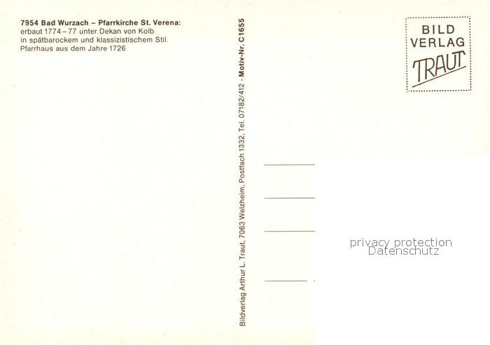 73143160 Bad Wurzach Pfarrkirche St Verena postalisch nicht gelaufen Erhaltung siehe scans [WerneD78] KatCode: 11110008436010
