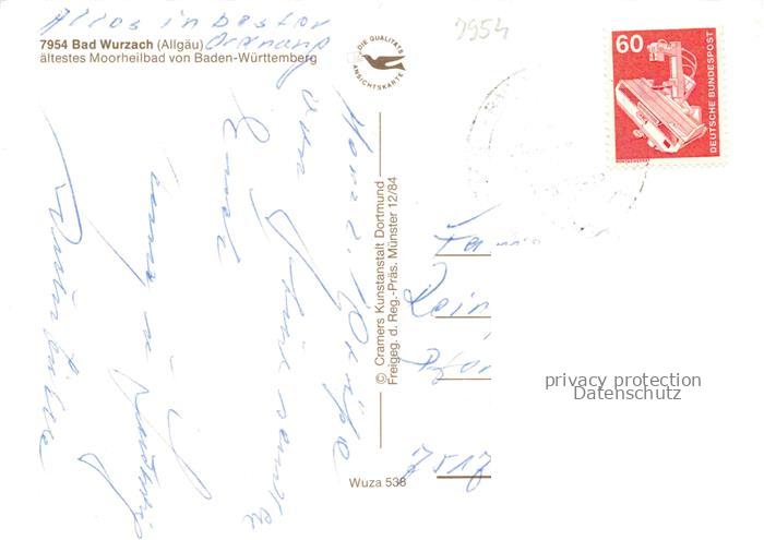74041156 alte Postkarte Bad Wurzach Ravensburg BW aeltestes Moorheilbad Bad-Wuerttembergs postalisch gelaufen Fliegeraufnahme Erhaltung siehe scans [FriedD77] KatCode: 11110008436010