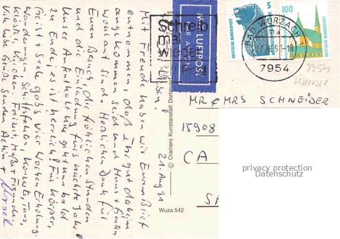 74052635 alte Postkarte Bad Wurzach Ravensburg BW An der Ach Schloss Gymnasium Kirche Rheuma-Klinik Kurpark Erikabluete im Ried Luftaufnahme postalisch gelaufen Erhaltung siehe scans [FriedD77] KatCode: 11110008436010