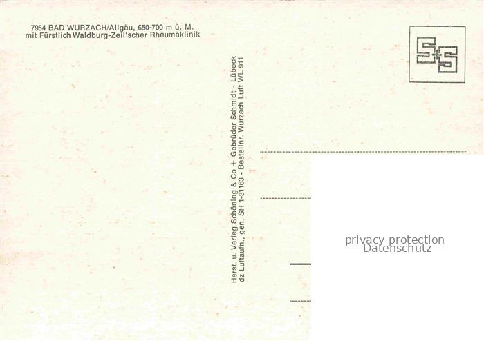 74096453 Bad Wurzach Ravensburg BW Fliegeraufnahme mit Fuerstl Waldburg Zeil’scher Rheumaklinik postalisch nicht gelaufen Erhaltung siehe scans [WerneD78] KatCode: 11110008436010