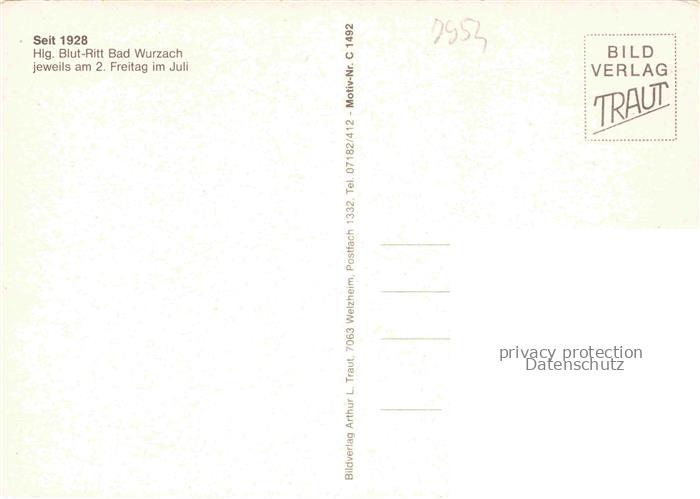74041170 Bad Wurzach Ravensburg BW Hlg.-Blut Ritt postalisch nicht gelaufen Erhaltung siehe scans [FriedD77] KatCode: 11110008436010