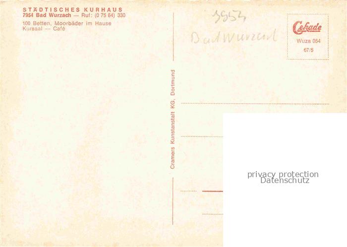 74052843 Bad Wurzach Ravensburg BW Kurhaus Restaurant Moorheilbad postalisch nicht gelaufen Erhaltung siehe scans [FriedD77] KatCode: 11110008436010