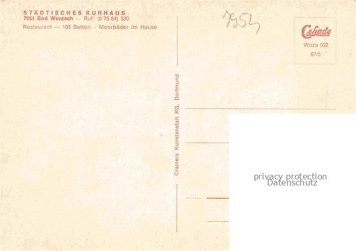 74052848 Bad Wurzach Ravensburg BW Kurhaus Restaurant postalisch nicht gelaufen Erhaltung siehe scans [FriedD77] KatCode: 11110008436010
