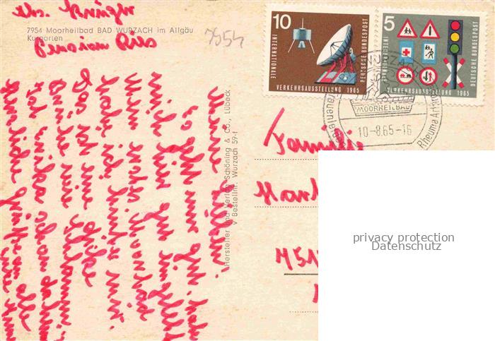 74051163 alte Postkarte Bad Wurzach Ravensburg BW Moorheilbad Kurgarten postalisch gelaufen Erhaltung siehe scans [FriedD77] KatCode: 11110008436010