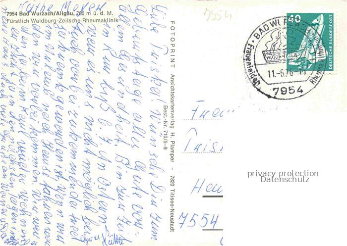 74041173 alte Postkarte Bad Wurzach Ravensburg BW Rheumaklinik Kuranwendungen Hallenbad Speisesaal Rezeption postalisch gelaufen Erhaltung siehe scans [FriedD77] KatCode: 11110008436010