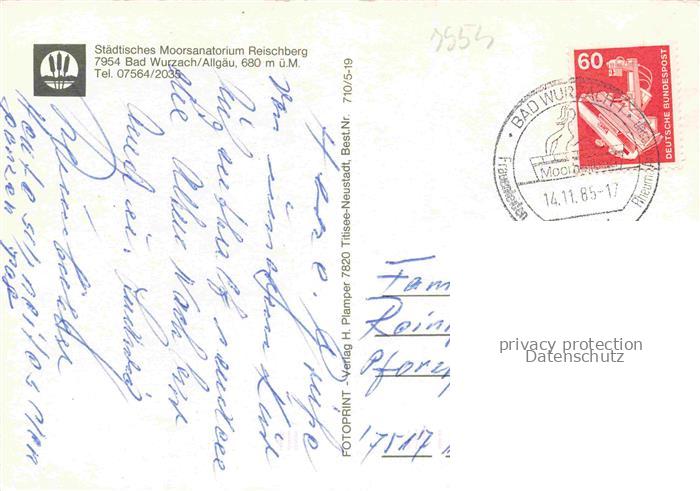74041155 alte Postkarte Bad Wurzach Ravensburg BW Staedtisches Moorsanatorium Reischberg Kuranwendungen Hallenbad Speisesaal Buffet Terrasse postalisch gelaufen Erhaltung siehe scans [FriedD77] KatCode: 11110008436010