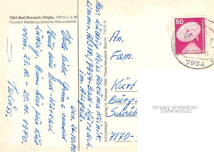 72772362 alte Postkarte Bad Wurzach Rheumaklinik postalisch gelaufen Erhaltung siehe scans [AndreD76] KatCode: 11110008436010
