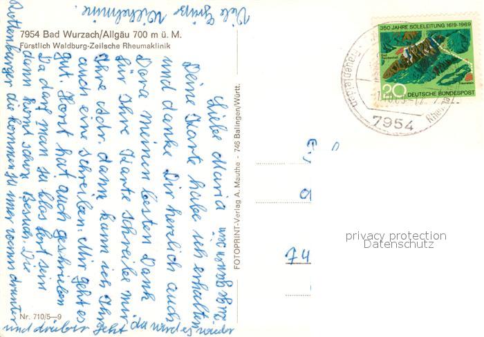 73106525 alte Postkarte Bad Wurzach Rheumaklinik Fuerstlich Waldburg Zeilsche postalisch gelaufen Erhaltung siehe scans [KathaD81] KatCode: 11110008436010