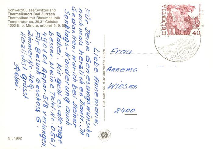 13918355 alte Postkarte Bad Zurzach Thermalbad postalisch gelaufen Erhaltung siehe scans [WerneD78] KatCode: 11470010055526