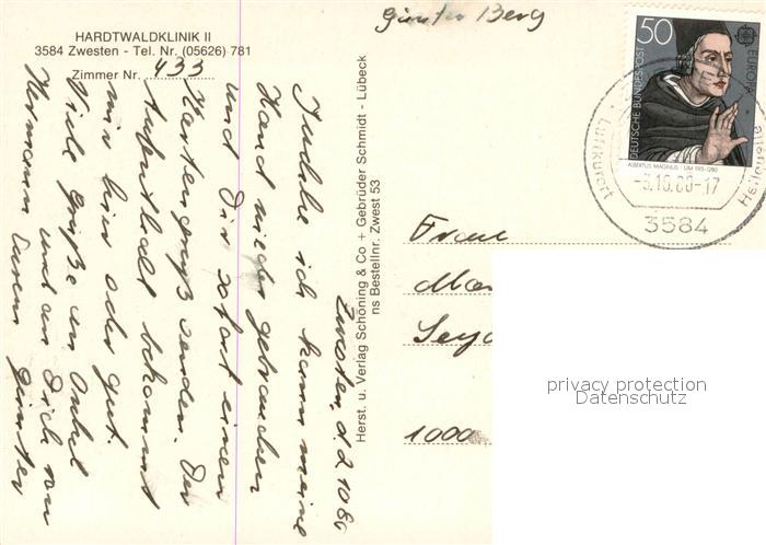 73725019 alte Postkarte Bad Zwesten Hardwaldklinik II Springbrunnen Ortsansicht postalisch gelaufen Erhaltung siehe scans [FriedD77] KatCode: 11110006634027