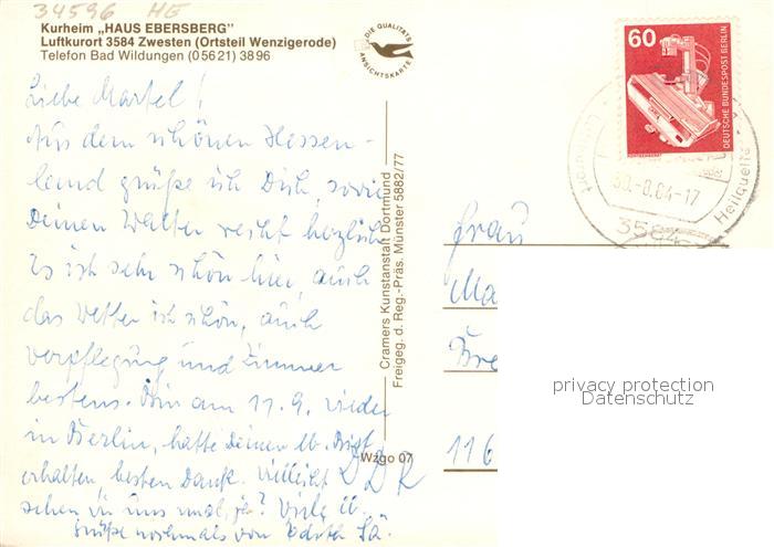 73668610 alte Postkarte Bad Zwesten Kurheim Haus Ebersberg Fliegeraufnahme postalisch gelaufen Erhaltung siehe scans [WerneD78] KatCode: 11110006634027