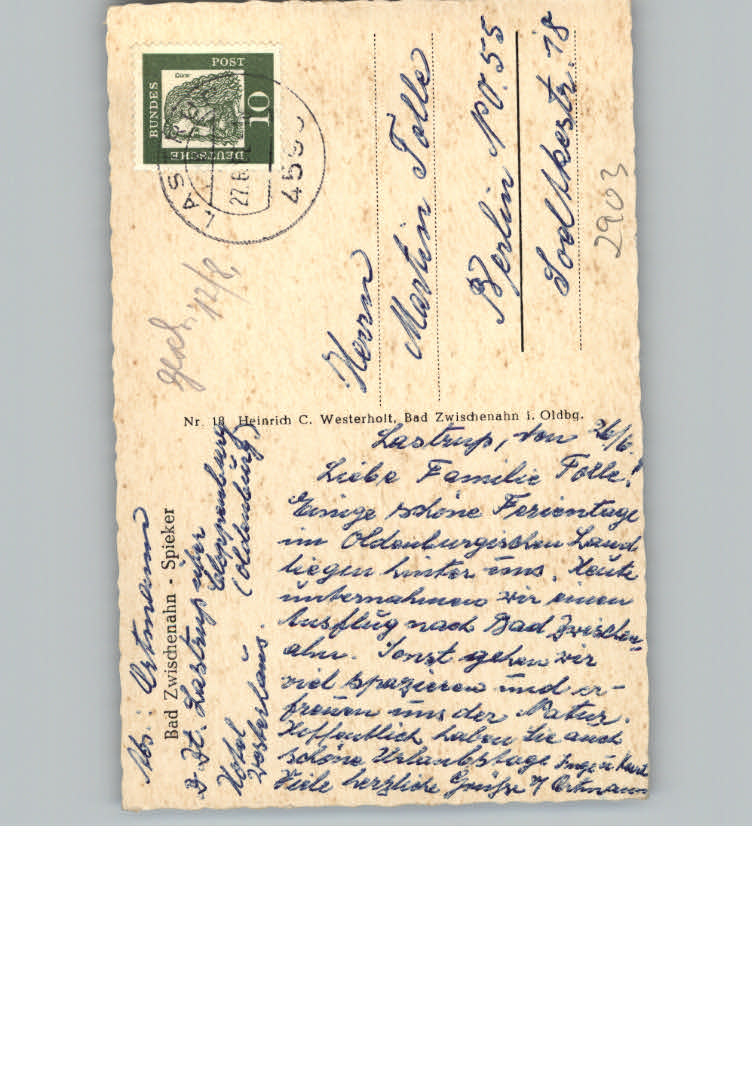 31123019 Bad Zwischenahn postalisch nicht gelaufen KatCode: