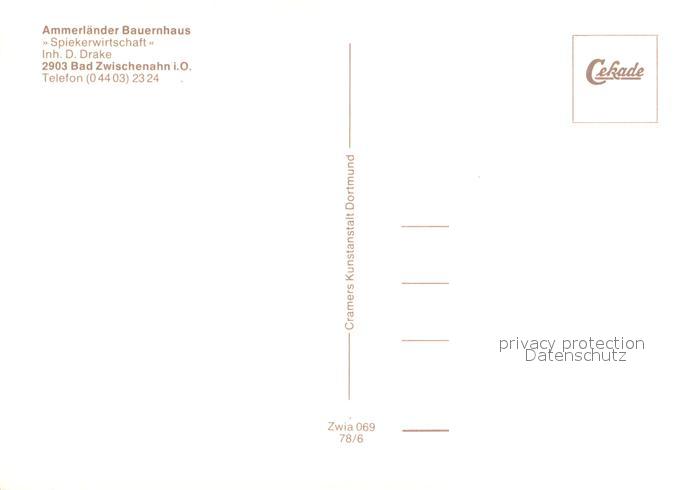 73734670 Bad Zwischenahn Ammerlaender Bauernhaus Spiekerwirtschaft postalisch nicht gelaufen Erhaltung siehe scans [LiesaD40] KatCode: 11110003451002