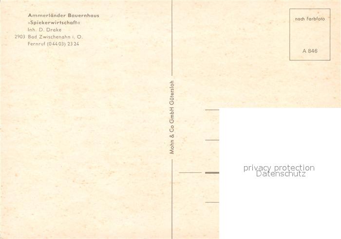 73574242 Bad Zwischenahn Ammerlaender Bauernhaus Spiekerwirtschaft postalisch nicht gelaufen Erhaltung siehe scans [FriedD77] KatCode: 11110003451002