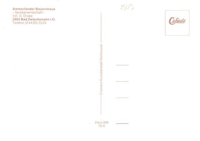73931001 Bad Zwischenahn Ammerlaender Bauernhaus Spiekerwirtschaft postalisch nicht gelaufen Erhaltung siehe scans [WerneD78] KatCode: 11110003451002