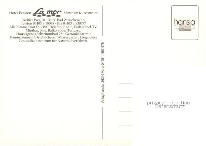 73202211 Bad Zwischenahn Hotel Pension La mer Hallenbad Restaurant Kurzentrum postalisch nicht gelaufen Erhaltung siehe scans [FriedD77] KatCode: 11110003451002