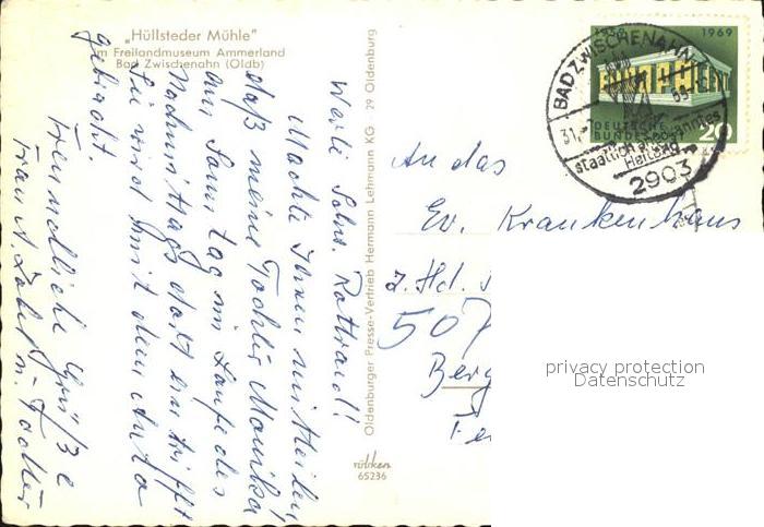 72447670 alte Postkarte Bad Zwischenahn Huellsteder-Muehle postalisch gelaufen Erhaltung siehe scans KatCode: 11110003451002