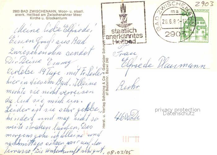 72888473 alte Postkarte Bad Zwischenahn Kirche und Glockenturm postalisch gelaufen Erhaltung siehe scans [WerneD78] KatCode: 11110003451002