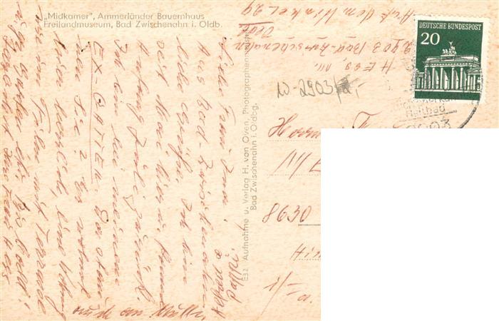 73914998 alte Postkarte Bad Zwischenahn Midkamer Ammerlaender Bauernhaus Freilandmuseum postalisch gelaufen Erhaltung siehe scans [FriedD77] KatCode: 11110003451002