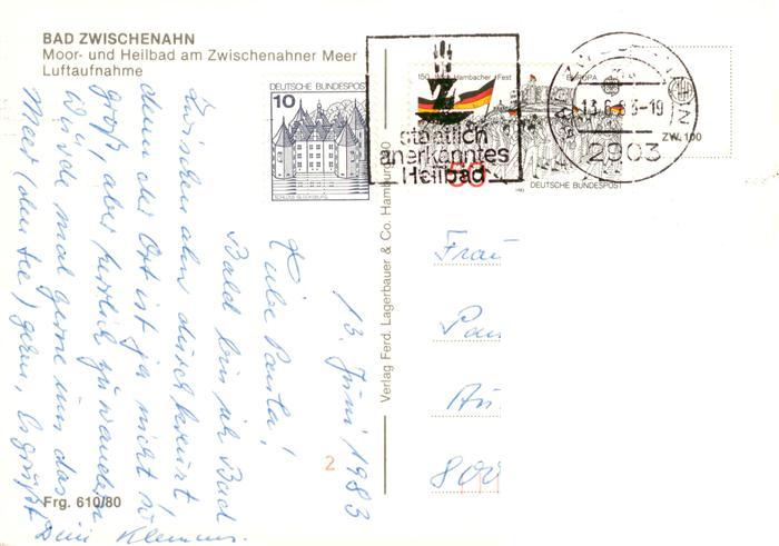 73881425 alte Postkarte Bad Zwischenahn Moor und Heilbad am Zwischenahner Meer Fliegeraufnahme postalisch gelaufen Erhaltung siehe scans [WerneD78] KatCode: 11110003451002