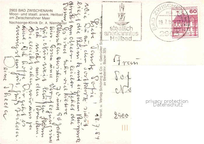 72786758 alte Postkarte Bad Zwischenahn Moor und Heilbad Nachsorge Klinik am Zwischenahner Meer postalisch gelaufen Erhaltung siehe scans [WerneD78] KatCode: 11110003451002