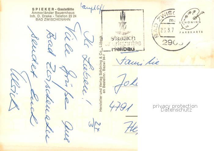 73688153 alte Postkarte Bad Zwischenahn Spieker Gaststaette Ammerlaender Bauernhaus Muehle postalisch gelaufen Erhaltung siehe scans [WerneD78] KatCode: 11110003451002