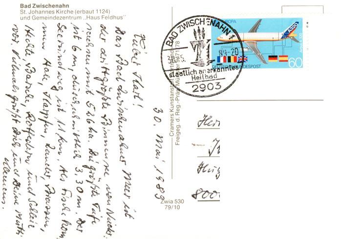 73881424 alte Postkarte Bad Zwischenahn St Johannes Kirche und Gemeindezentrum Haus Feldhus postalisch gelaufen Erhaltung siehe scans [WerneD78] KatCode: 11110003451002