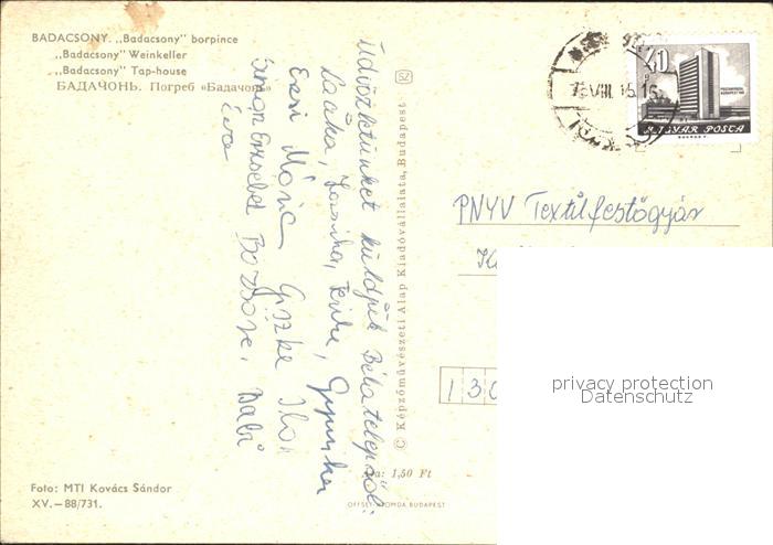 old postcard Badacsony Borpince Weinkeller postalisch gelaufen Erhaltung siehe scans