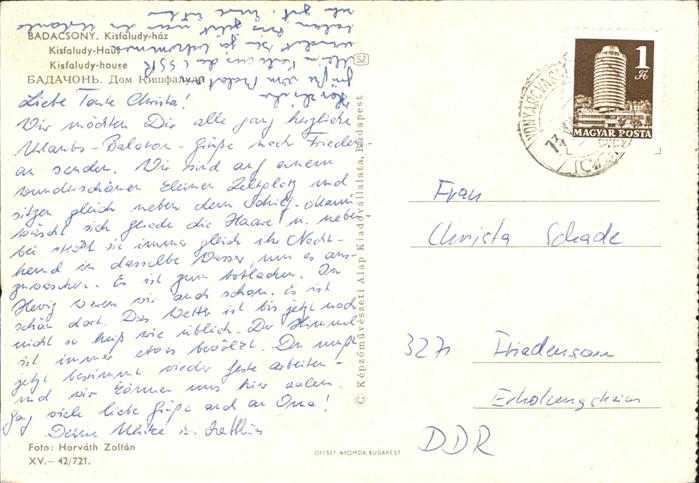 old postcard Badacsony Kisfaludy-haz postalisch gelaufen Erhaltung siehe scans