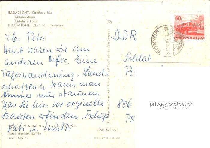 old postcard Badacsony Kisfaludyhaus Gasthaus postalisch gelaufen Erhaltung siehe scans