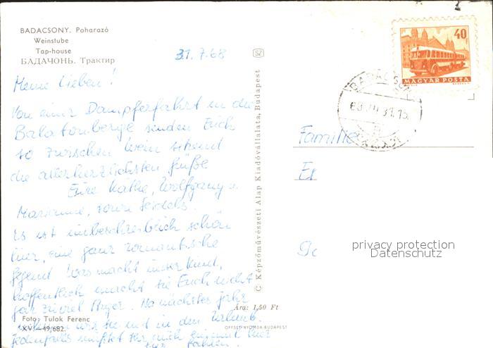 old postcard Badacsony Poharazo Weinstube postalisch gelaufen Erhaltung siehe scans