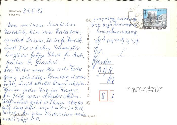 old postcard Badacsony Tafelberg Gaststaette Denkmal Uferpromenade Plattensee postalisch gelaufen Erhaltung siehe scans