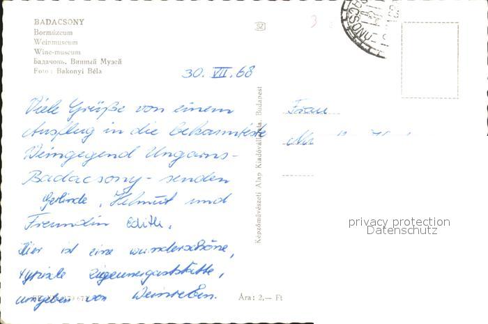 alte Postkarte Badacsony Weinmuseum postalisch gelaufen Erhaltung siehe scans