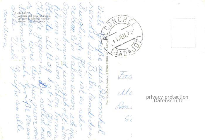 74157631 old postcard Badajoz Extremadura ES Avenida-del-General-Varela Brunnen Palmen Boulevard Autos Passanten Stadtansicht postalisch gelaufen Erhaltung siehe scans [Karloger] KatCode: 11510