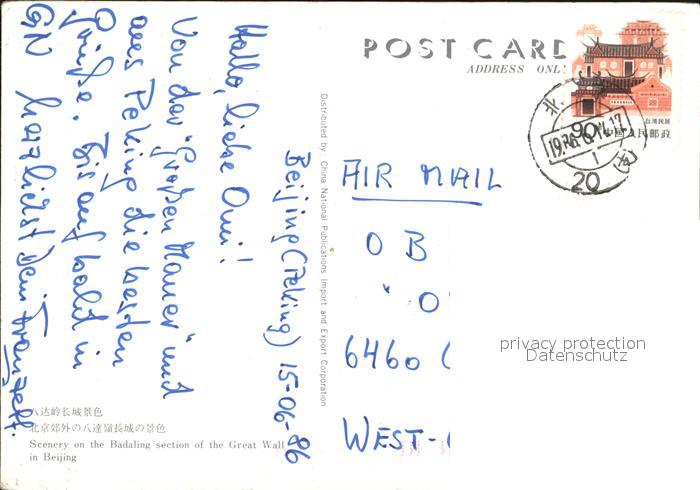 old postcard Badaling Chinesische Mauer postalisch gelaufen Erhaltung siehe scans