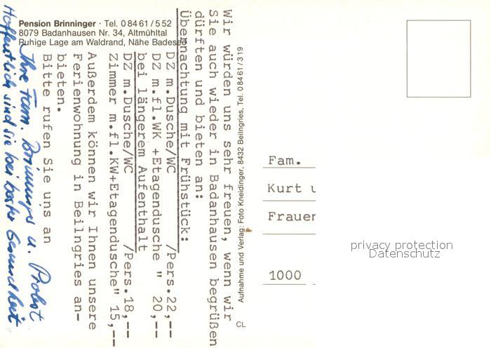 73651340 Badanhausen Pension Brinninger postalisch nicht gelaufen Erhaltung siehe scans [WerneD78] KatCode: 11110009176137