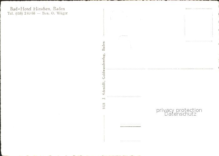11622453 Baden AG Bad Hotel Hirschen postalisch nicht gelaufen Erhaltung siehe scans KatCode: 11470010010034