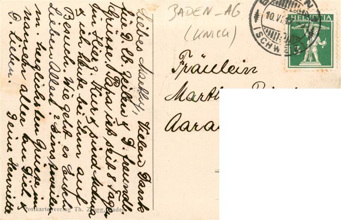 13920361 alte Postkarte Baden AG Stadtturm postalisch gelaufen Erhaltung siehe scans [FriedD77] KatCode: 11470010010034