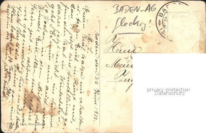 12584131 alte Postkarte Baden AG Strassenpartie Wohnhaeuser postalisch gelaufen Erhaltung siehe scans [FriedD77] KatCode: 11470010010034